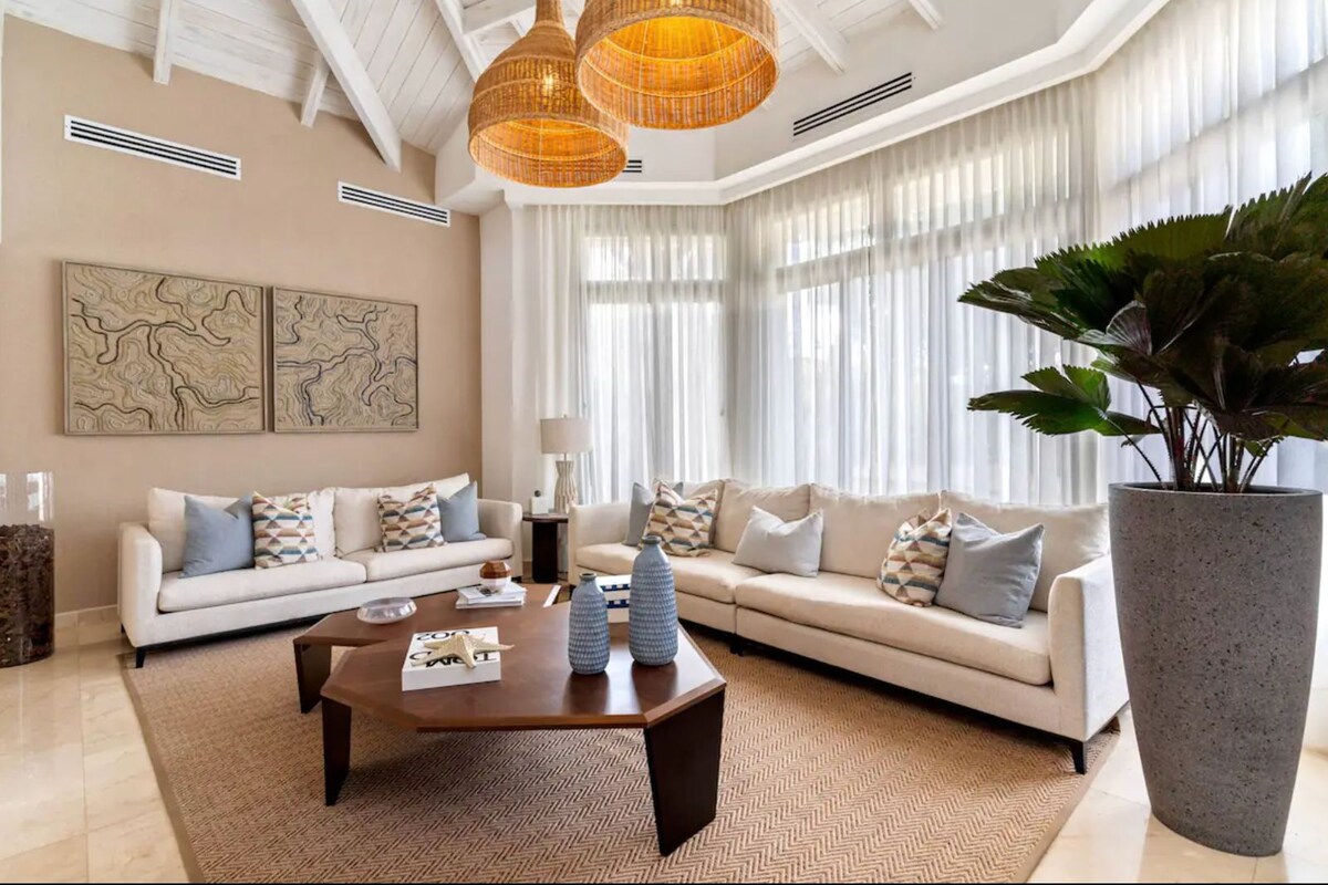 Escape to this stunning villa, perfect for families and friends seeking relaxation and luxury. Surrounded by lush greenery, it features an elegant open-concept living space with vaulted ceilings and vibrant décor. Enjoy the serene pergola-covered lounge, a private pool, and lush gardens—ideal for unwinding. Where you'll also have access to world-class amenities, including a private beach, marina, and fine dining options. Experience the perfect blend of comfort, nature, and Caribbean charm.