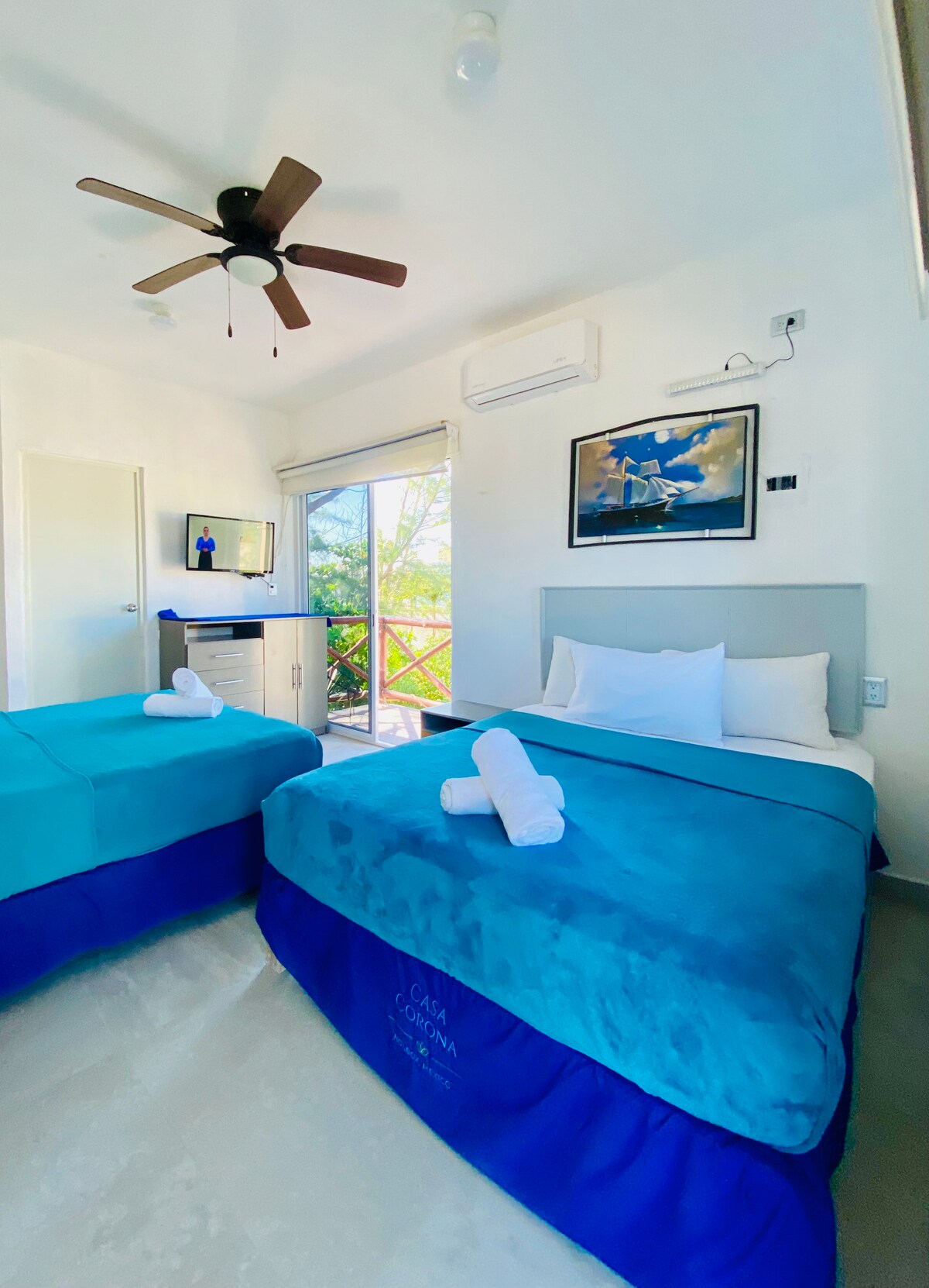 Te invitamos a disfrutar de la comodidad y encanto de esta habitación en Casa Corona. En la habitación 4, encontrarás todas las comodidades que necesitas. - Aire acondicionado - 2 camas Queen Size - TV por cable - WiFi - Cafetera y café - Frigobar - Microondas - Baño privado - Agua fría y caliente - Balcón En Casa Corona, nos enorgullece recibirte con los brazos abiertos y brindarte una experiencia excepcional. ¡Disfruta de todo lo que Holbox tiene para ofrecerte durante tu estancia!