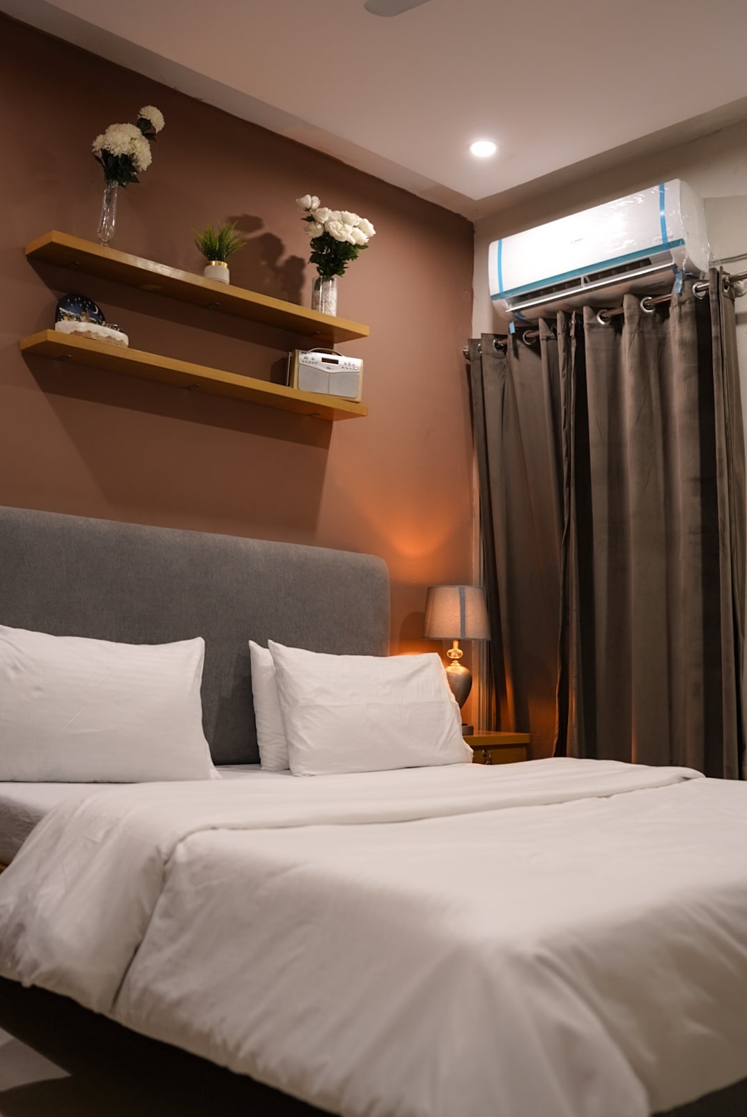 Experience modern, comfort and elegance at this designer 1 bedroom apartment in Bahria Town Phase 8. Enjoy high speed WiFi, a Netflix ready Smart TV, and effortless self check-in. Located in a peaceful gated community with 24/7 security. Just minutes from Giga Mall, Amazon Mall and Phase 7 Food Street. Perfect for couples, professionals, or long term guests. Your serene escape in Bahria Town awaits, feel at home the moment you arrive.