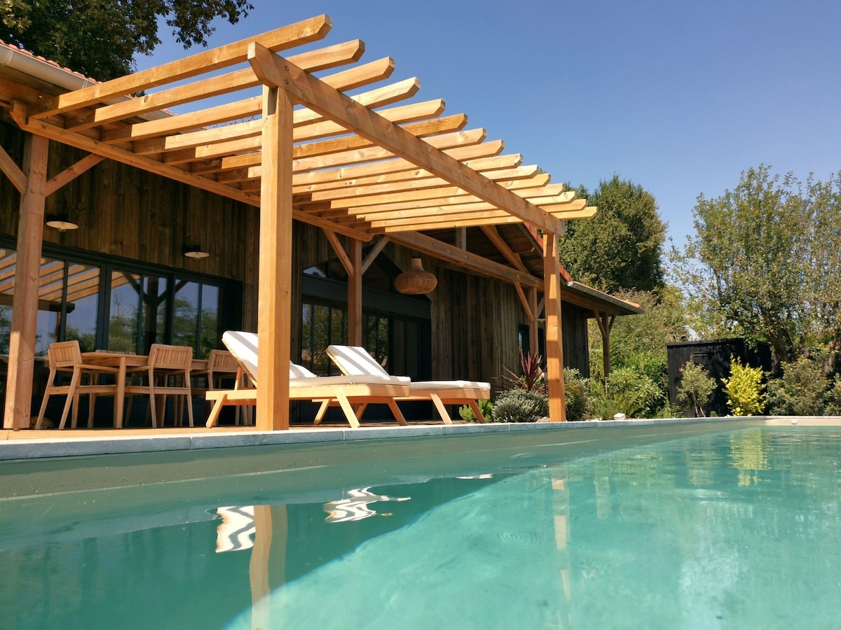 Villa de madera con piscina climatizada y spa - Burdeos