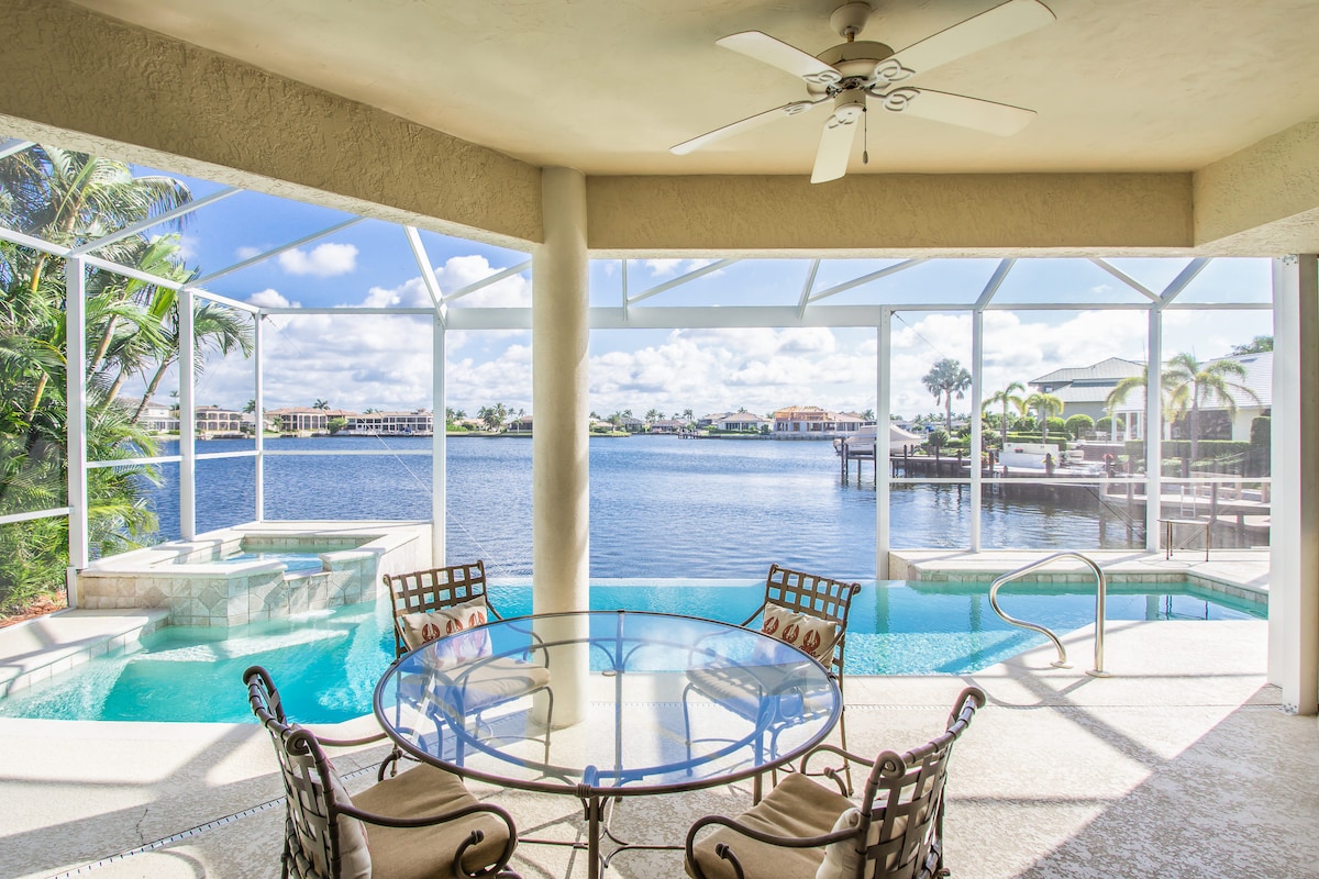 ¡Esta casa de ensueño se encuentra en el corazón de Marco Island con todo lo que necesitas para un viaje inolvidable! ¡Disfruta de la comodidad de estar a solo unos minutos de South Marco Beach, con su arena blanca y cielos azules despejados, y los mejores restaurantes como Da Vinci's, Marco Prime, The Snook Inn, The Oyster Bar y tiendas en la isla! Termina el día contemplando las impresionantes puestas de sol de exposición occidental desde tu propio patio frente al mar y muelle...