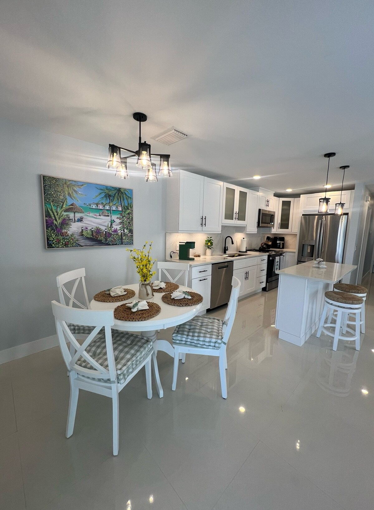 Relájate y desconecta en este alojamiento tranquilo y elegante. Los huéspedes disfrutarán de la proximidad a los puntos de interés de Marco Island con un entorno tranquilo y silencioso. Un gran porche para sentarse y relajarse. Es posible que veas delfines o manatíes en el canal. Camina hasta el Snook Inn o el pub. Alquila bicicletas en Bald Eagle, otro corto paseo. Desayuno, almuerzo y cena en restaurantes al otro lado de la calle o cocina tus propias comidas. ¡Pide kayaks para un corto paseo hasta la playa de Tigertail!