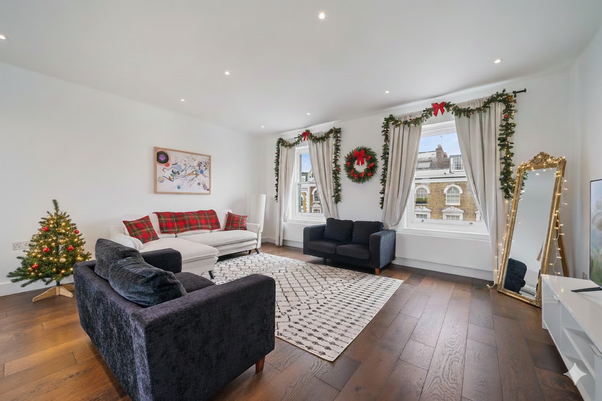 Ubicada en el corazón de Notting Hill, esta casa ultramoderna y elegante ofrece una mezcla excepcional de diseño contemporáneo y vida de lujo. Con tres amplios dormitorios y tres elegantes baños, esta casa bellamente diseñada ofrece comodidad y sofisticación en uno de los lugares más buscados de Londres. Esta hermosa Mews es famosa por su aparición en Love Actually: ¡esta acogedora estancia ofrece una verdadera experiencia londinense! *Nuestra casa tiene aire acondicionado solo en la planta superior.
