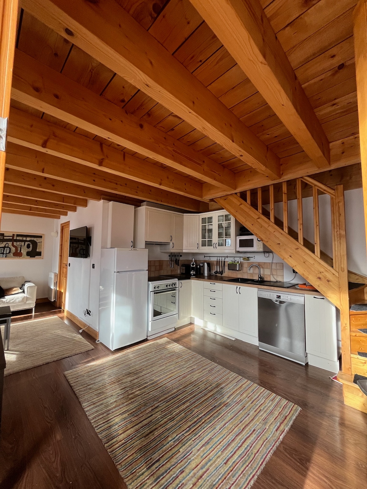Buenos días, Hola, Hallo, Estamos alquilando un piso de 538 pies cuadrados, recientemente renovado, totalmente equipado con techo inclinado, en el último piso de un chalet independiente ubicado en las alturas de una tranquila aldea. Incluye una gran terraza , estacionamiento, 2 camas tamaño king (5,25 pies) y disfruta de una hermosa vista sobre las montañas. Vivimos entre Jausiers y Barcelonnette. Es una ubicación perfecta para esquiar, hacer senderismo, disfrutar de las festividades de Barcelonnette o el lago de Jausiers. Ropa de cama incluida. Esperamos verte pronto.