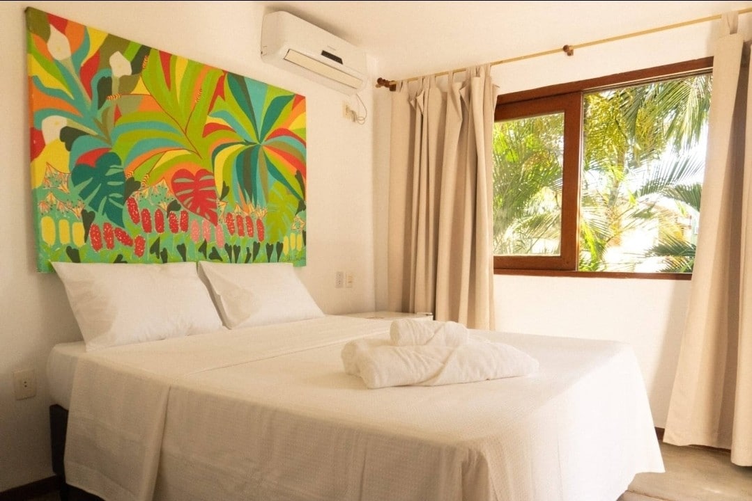 Relájese en este espacio tranquilo y elegante y abrace la sencillez en este lugar tranquilo y bien ubicado a solo 10 minutos a pie de la calle principal de Pituba. Bienvenido a nuestro refugio tropical en Itacaré en la playa de Tiririca, donde podrá desconectarse del mundo y conectarse con la naturaleza. Este alojamiento con vistas al mar cuenta con ventilador de columna, cocina, estufa, nevera y un buen balcón para leer un buen libro y descansar. Nuestro chalet se encuentra dentro de un condominio.