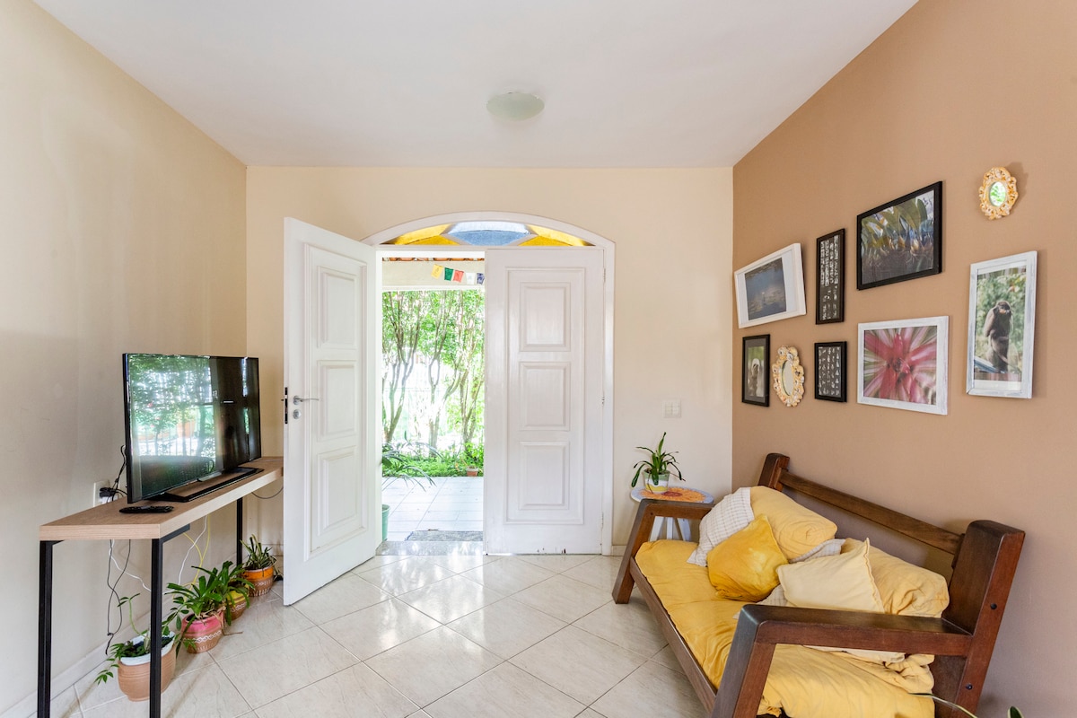 Bienvenido a nuestro refugio romántico en la Mata Atlántica. Acogedor y rodeado de naturaleza, nuestro Chalet ofrece paz y tranquilidad, perfecto para parejas que buscan momentos inolvidables. Disfruta de la playa de Itacoatiara a pocos pasos, relájate en un ambiente sereno. Cocina completa, sala de estar espaciosa, espacio para meditar, terraza exterior y aire acondicionado. Crea recuerdos románticos duraderos en medio de la belleza natural de Itacoatiara. ¡Reserva ahora!