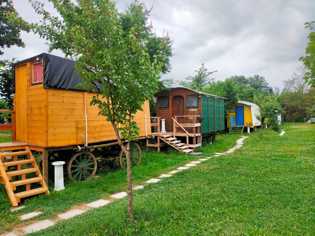 Nuestra solución es quizás la mejor para los amantes de las acampadas. En la naturaleza, con una cama real en un vagón de madera, puedes tener un poco de comodidad y tu fuente de alimentación. Fuera de una cocina común y los baños con agua caliente. En nuestro enorme jardín, una bonita piscina de verano, un patio y áreas comunes para socializar. Por todas partes, producimos nuestra comida orgánica y, muy a menudo, organizamos cenas y fiestas colectivas. No solo estamos cerca de Venecia , sino también en medio de una región rica en historia con 5 patrimonios de la Unesco.