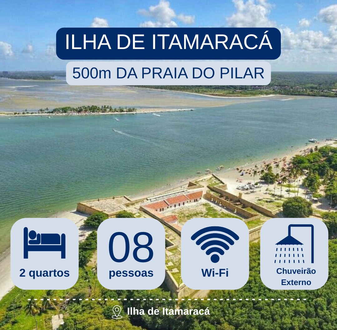 Casa com piscina em Itamaracá no Pilar (rua senador nilo coelho, 136) a cerca de 1km da praça do pilar sentido jaguaribe. Entrar a esquerda antes do armazém saraiva. Casa terreo + primeiro andar. Nossa casa conta com 3 quartos e 3 banheiros (4 camas de solteiro, 4 colchonetes e 1 cama de casal) 1 Smart TV 24', Wi-Fi, 4 ventiladores, churrasqueira e cozinha basica completa (panelas, liquidificador, , pratos, copos e talheres) estacionamento para 3 carros. Piscina 8x4 Profundidade de 1m a 1.5m