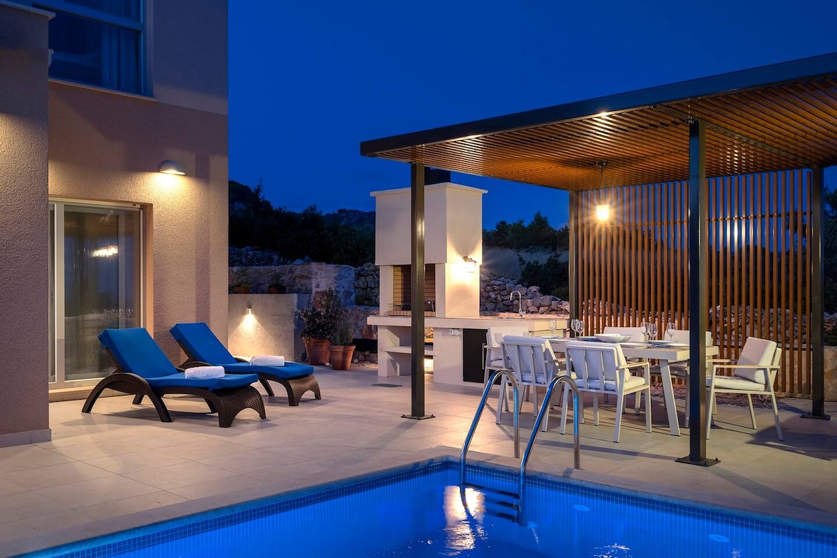 Villa Moderna: comodidad moderna con piscina y vistas al mar