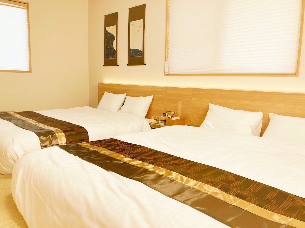Hoy en día, cada vez hay más japoneses falsos creados para los turistas en Japón, pero en esta casa tradicional se puede experimentar la auténtica vida japonesa. En esta espaciosa casa de 5 LDK, puedes relajarte en las alfombras de tatami y dormir en futones. Puedes disfrutar del mismo paisaje e ir de compras al mismo supermercado que los lugareños, como una auténtica vida japonesa. La casa también está decorada con decoraciones tradicionales de temporada japonesas. También puedes disfrutar de barbacoas y tomar el sol en el jardín.