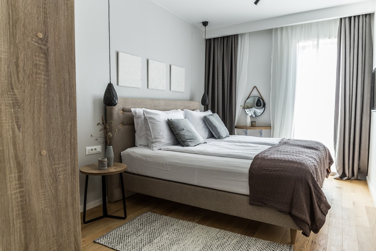 Nuestro nuevo apartamento URBAN City *BEACH* está a solo 5 minutos a pie de la playa de Kolovare, a 10 minutos de las antiguas murallas de la ciudad y a 3 minutos de la estación principal de autobuses. Todas las tiendas y mercados están a la vuelta de la esquina. APARCAMIENTO gratuito, 2 aires acondicionados, calefacción por suelo radiante, 1 dormitorio, 1 balcón, una gran sala de estar y cocina totalmente equipada (lavavajillas), baño con ducha a ras de suelo (lavadora y secadora). Perfecto para una pareja feliz o 2 amigos. Hermoso diseño, mucha luz, espacio y comodidad. ¡RESERVA AHORA!