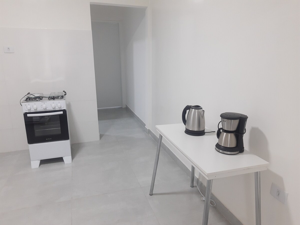 Abrace a simplicidade neste lugar tranquilo e bem-localizado! Nossa kitnet prática e confortável no coração da cidade oferece ótimo custo-benefício. . Conta com cozinha equipada (fogão elétrico, micro-ondas, cafeteira, panela de arroz e utensílios básicos) e lavanderia compartilhada com máquina de lavar, secadoras e ferro de passar. . Importante: não fornecemos roupa de cama, toalhas ou travesseiros. Não se esqueça de trazer os seus!