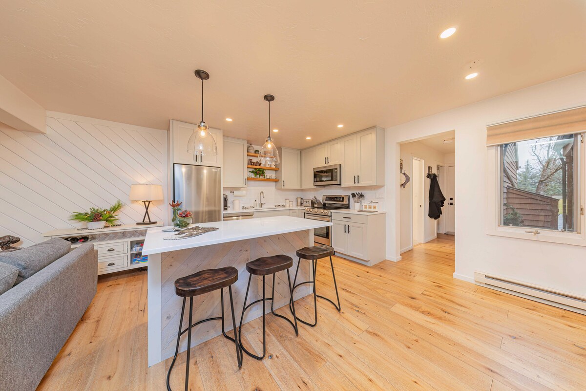 Este condominio de un dormitorio y un baño junto a la montaña tiene un acceso increíble a Snow King Mountain y el centro de Jackson Hole está a 10 minutos a pie. Conveniente ubicación para acceder en autobús a JHMR para esquiar de clase mundial. La unidad cuenta con un dormitorio con cama tamaño king, un pequeño patio, baño completo y zona de cocina. La sala de estar tiene una cama murphy para huéspedes adicionales. La unidad de arriba está bloqueada desde la planta baja con una entrada exterior separada e insonorización. Se permiten mascotas por una tarifa de $50.