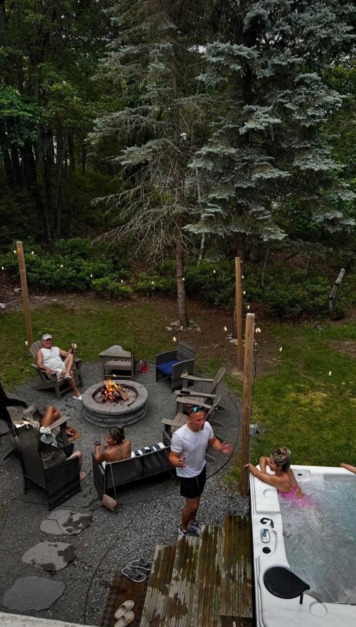 **Clasificado como el "Mejor Airbnb en PA" por House Beautiful, 2022** Ven y alójate en uno de los chalets más encantadores de los Poconos. Esta casa de 2 dormitorios (más un loft para dormir)/2BA es elegante, apta para familias y bien equipada con todo lo que necesitas. Aire acondicionado para mantenerte fresco en verano y una estufa de pellets para esas acogedoras noches de invierno. Un cómodo sótano tiene una estufa de leña adicional y una mesa de ping pong. En el exterior hay una gran terraza, una bañera de hidromasaje para tres personas y una chimenea al aire libre.