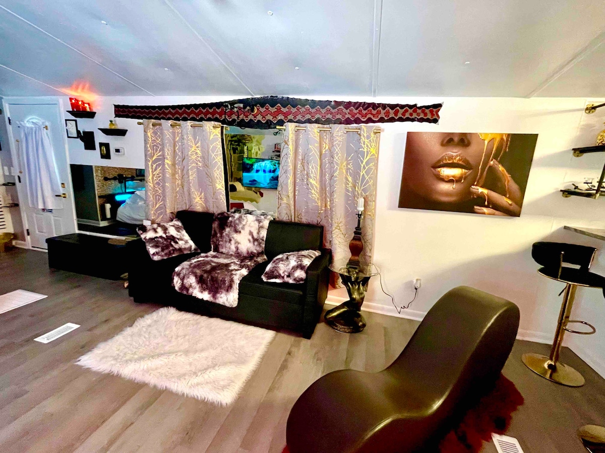 La HOTHOUSE es una casa móvil única con estilo Risquè (capacidad máxima para 4 personas). Privado, rodeado de árboles, sin vecinos. Damos la bienvenida a parejas y amigos para aniversarios, lunas de miel o aquellos que buscan una razón para escapar del mundo y las rutinas. Es la residencia más cercana a JAX; los viajeros que pernoctan son bienvenidos. Este alojamiento no es típico. Buscamos que te sumerjas por completo en una estancia y experiencia únicas. A menos de 2 millas del aeropuerto, tiendas y restaurantes. Ponte en contacto con nosotros directamente sobre las características y detalles de THE SWEATSHOP.