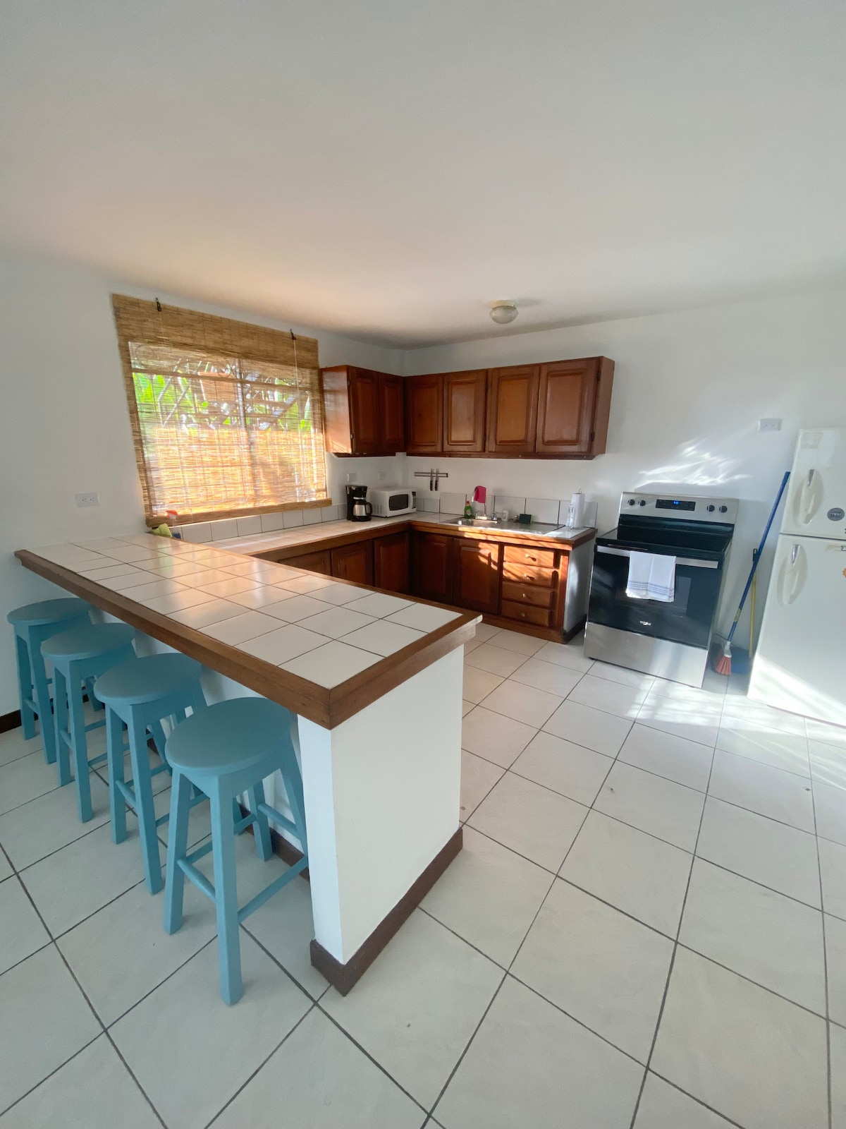 Es un apartamento bastante cómodo; cuenta con A/C y ventilador de techo; cuenta con cuarto de pilas; además la propiedad es muy segura y con suficiente espacio para guardar vehículos. La propiedad está ubicada en un barrio muy seguro y tranquilo; está a tan solo 5 minutos en carro de Jaco Beach; a 2 minutos de Playa Herradura; a 3 minutos del mejor Resort de playa del país (Marina Resort Los Sueños). Cuenta también con Jacuzzi en el área externa del apartamento.
