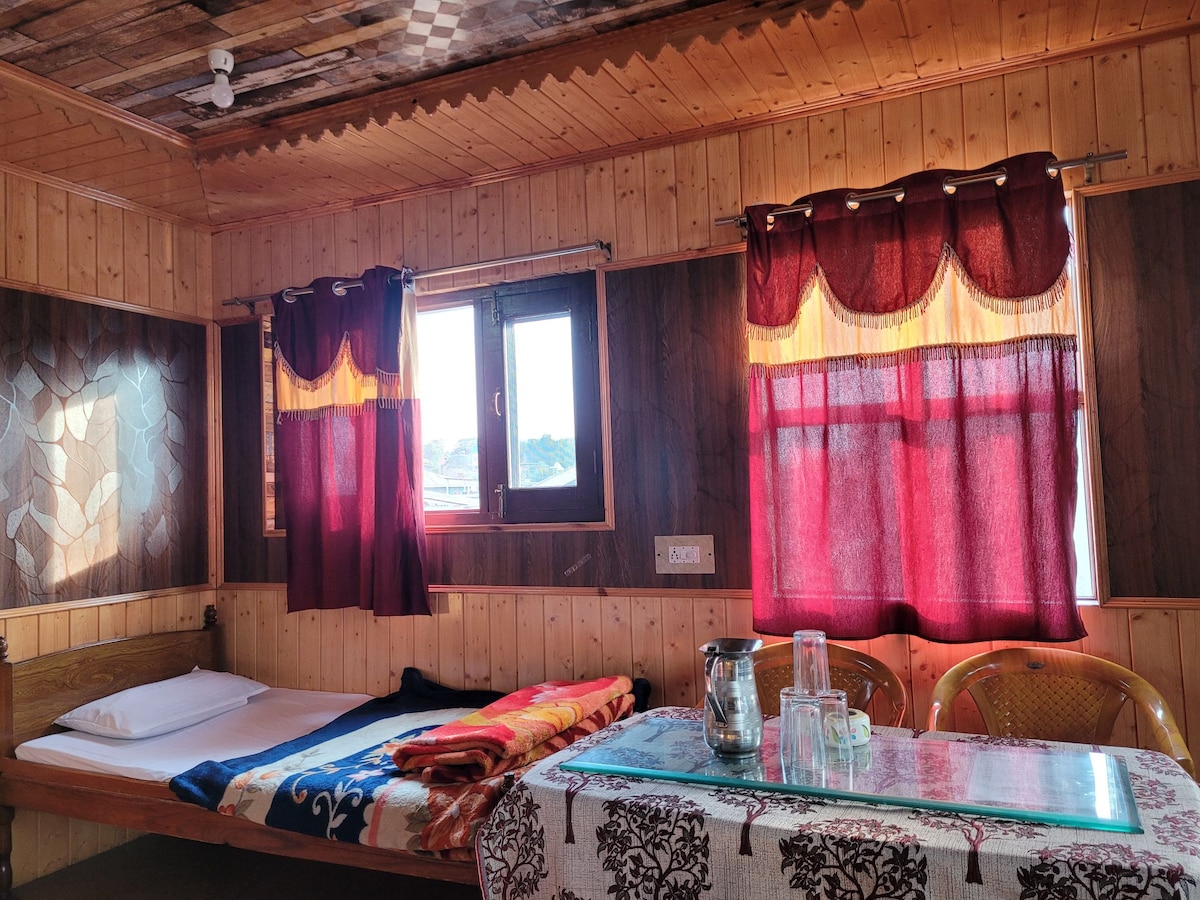 A spacious private room with attached modern bathroom. We allow up to 2 adults in one room. You are surrounded by green fields, forests and mountains. Wake up to the chatter of the birds and gaze at the snow covered Dhauladhar Mountains. We are at 1850m where the air is so fresh that you will forget all city pollutions. Our water comes directly from the mountain glaciers. You can go walking, hiking, bird watching, river swimming, forest walk, star gazing, etc. This is your home within nature.