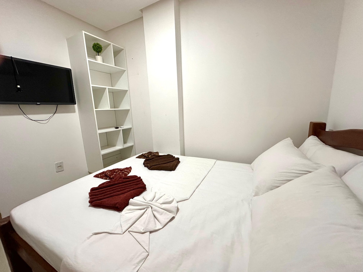 Dispomos de um espaço incrível, oferecemos uma experiência única e inesquecível a nossos hóspedes! Nossos 5 flats são completos de tudo, temos 2 pontos de Internet 100mb, sinal completo em todo ambiente! Oferecemos todo o suporte para que sua experiência se torne perfeita! Todos nossos hóspedes são recepcionados de maneira única e exclusiva, tornando a experiência de cada hóspede que passa por aqui, inesquecível! Possuímos também serviço de café da manhã mediante solicitação e pgto no check Out.