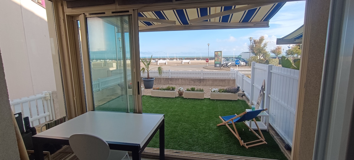 Studio de plain pied dans une propriété privée. Construction de 2015, état neuf. Cuisine équipée, four mixte micro-ondes / grille, plaques induction, réfrigérateur. Salle d'eau avec douche à l'italienne. Canapé convertible, lit escamotable 2 personnes, sommier à lattes, rangements, télévision, parking privé, terrasse. Centre ville à 300 m, plage à 800 m et Vélodyssée à 30 m. Quartier calme, en retrait de la rue, entièrement clôturé, portail motorisée, digicode.