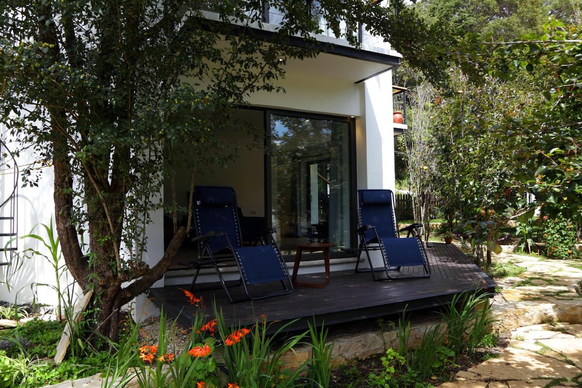 Cabaña con mucha luz del sol, muy tranquila y perfecta para descansar. Rodeada de jardines y una huerta agroecológica con árboles frutales, gallinas y conejos. Siente los aromas de flores, camina y disfruta los jardines y huerta. La cabaña se ubica en nuestra propiedad y comparte espacios con la Casa azul. Tiene una vista espectacular de las montañas y la ciudad. Ubicada en un barrio tradicional de San Cristóbal, a 5 minutos en auto y 15-20 minutos caminando del centro de la ciudad. Facturamos