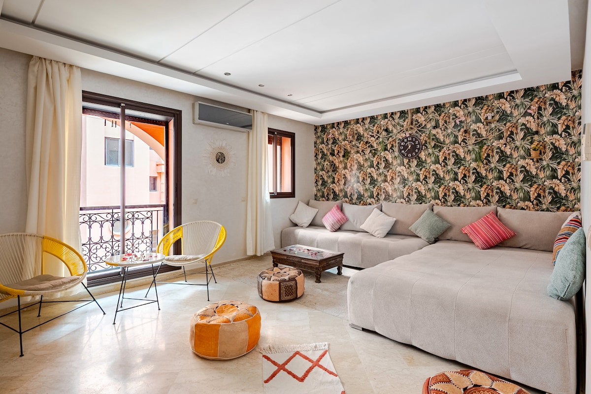 Bienvenido a La Suite Jonan. Amplio apartamento ubicado en el corazón del animado barrio de Marrakech, donde el lujo y la comodidad convergen para crear una estancia inolvidable. Situado en una ubicación céntrica privilegiada, ofrece fácil acceso a los famosos monumentos de Marrakech, los bulliciosos zocos y la animada vida nocturna. Sumérjase en el ambiente encantador de Marrakech mientras disfruta de la comodidad y el lujo de nuestro apartamento.