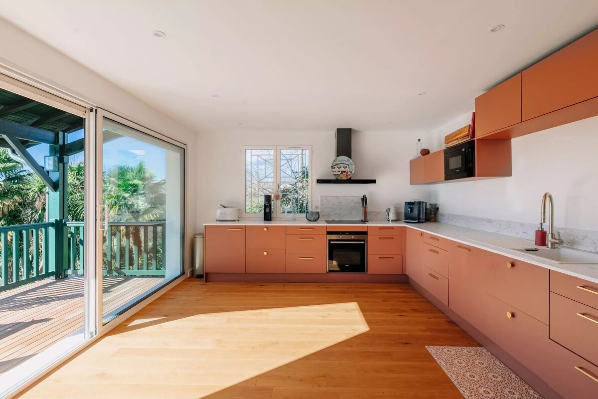 Cerca del mar y de la montaña, venga a relajarse en un refugio a 10 minutos de Biarritz. Encaramada sobre pilotes a más de 3 m,rodeada de árboles en un exuberante jardín, la cabaña está totalmente equipada para que pueda disfrutar de un gran confort en plena naturaleza. La cocina de verano totalmente equipada está debajo de la cabaña. Se despertará con el canto de los pájaros. OPCIÓN: pagadero en el lugar (no se aceptan tarjetas de crédito): baño nórdico 40 € (o 50 € con 2 albornoces). Desayuno sencillo autónomo incluido .