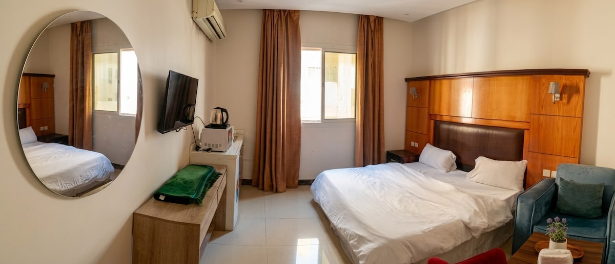 أهلاً بك في "مساكن الصافي" بشارع حراء. إقامة فندقية بخصوصية تامة وعناية فائقة بأدق تفاصيل النظافة لضمان راحتك. 📍 موقعك: 5 دقائق للمطار ومجمع العرب، والمطاعم والخدمات خطوات منك. ✨ الشقة: دخول ذاتي مرن، سرير كينج، مطبخ متكامل الأجهزة، وموقف مجاني. 🎮 الترفيه: فايبر سريع، شاشات ذكية، رسيفر لنقل كافة الأحداث الكروية والمباريات، واشتراكات (نتفلكس وشاهد). جهزنا لك كل ما تحتاجه لإقامة استثنائية!