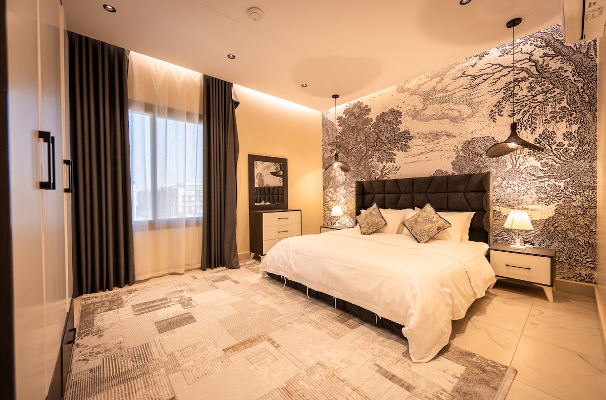 Lujosa unidad con un dormitorio principal, una cómoda sala de estar y una cocina lateral, la unidad está situada en el corazón de Jeddah, en el vibrante barrio turístico de Al Hamra. Cerca de todos los lugares que satisfacen las necesidades del huésped, ya sean recreativas o comerciales, como restaurantes, supermercados y todos los servicios... A minutos de la Corniche, la fuente de Yeda y la calle turística en el distrito de Al-Hamra. A minutos de la histórica Yeda y Al Balad La unidad cuenta con iluminación suave, diseño moderno, aislamiento, asientos cómodos y aire acondicionado dividido. También hay una pantalla inteligente de 70 pulgadas con YouTube, Netflix y otras aplicaciones.