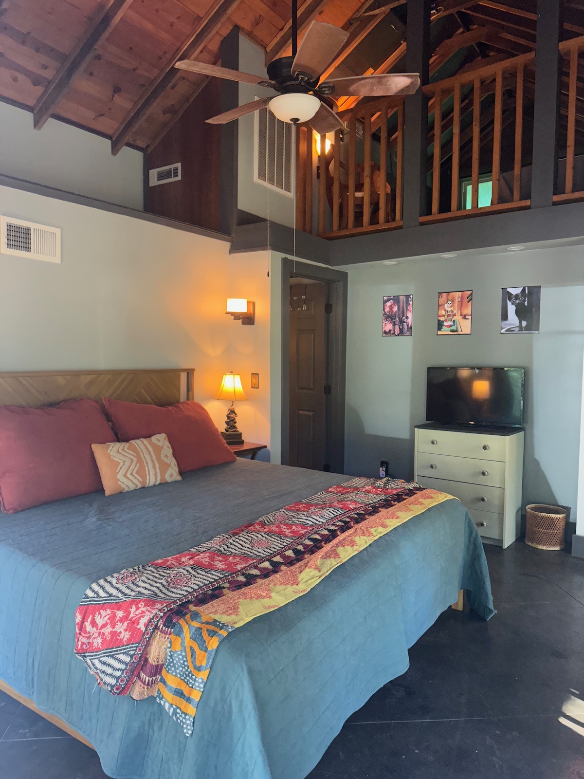 Apartamento loft pintoresco con hermosas vistas de nuestros bosques y patio trasero. Cama tamaño king en la planta principal con una cama de tamaño completo en el altillo. El espacio tiene hermosos techos de madera y una pared de ladrillo en el baño. Terraza privada con patio. Lavandería privada con acceso desde el exterior. Entrada compartida con mucho aparcamiento. Se admiten mascotas con aprobación previa.