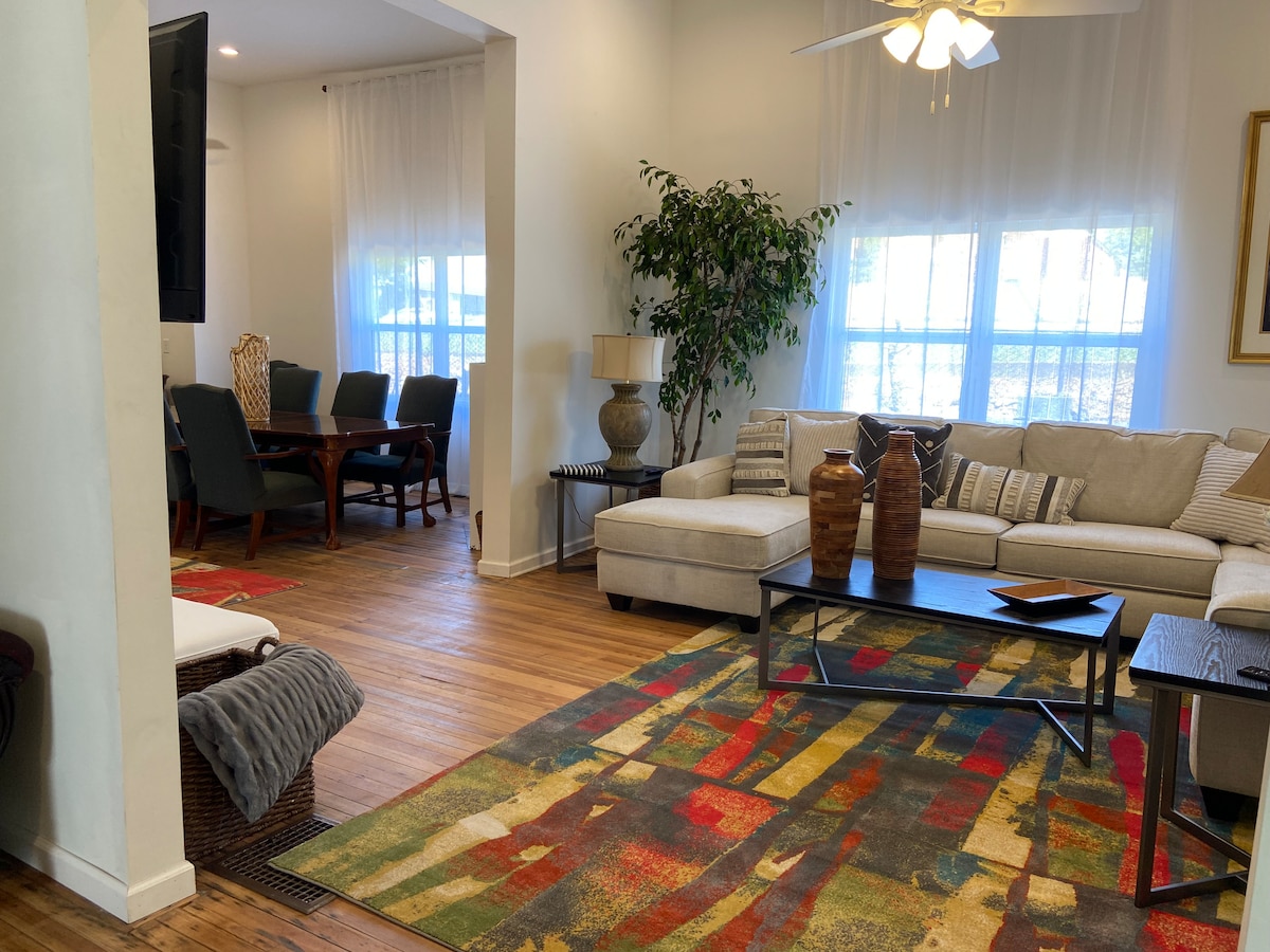 Siéntete como en casa y disfruta de un montón de espacio en este gran alojamiento. Puede albergar fácilmente una gran fiesta. Disfruta de la cafetería surtida por las mañanas y, por las noches, puedes traer tus licores y disfrutar de cócteles en la zona del bar. El patio trasero es sereno, privado y relajante. Puedes utilizar la parrilla de gas o carbón. También puedes disfrutar de una noche junto al fuego. Colchones de aire disponibles para alojar hasta 10 huéspedes (2 colchones de aire individuales y 1 colchón de aire tamaño queen).