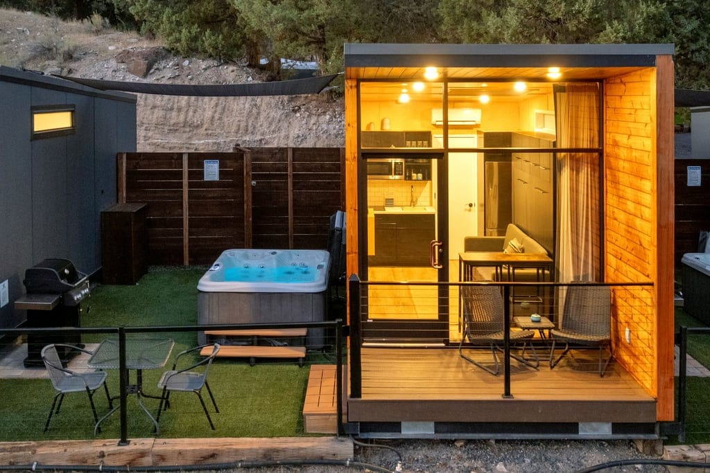 Ven a disfrutar de la relajación rústica en nuestra acogedora cabaña clásica. Son 208 pies cuadrados de acogedora comodidad en la impresionante garganta del río Crooked. La cabaña privada está equipada con baño privado, cocina pequeña, wifi, TV por cable, terraza privada y espacio suficiente para las piernas para descansar, relajarse y desconectar después de un día de aventura en el hermoso centro de Oregón. ¡Y la cabaña admite mascotas! (Se requiere comisión por mascotas, máximo 2 mascotas). ¡Es un lugar ideal para quitarse las botas y quedarse un tiempo!