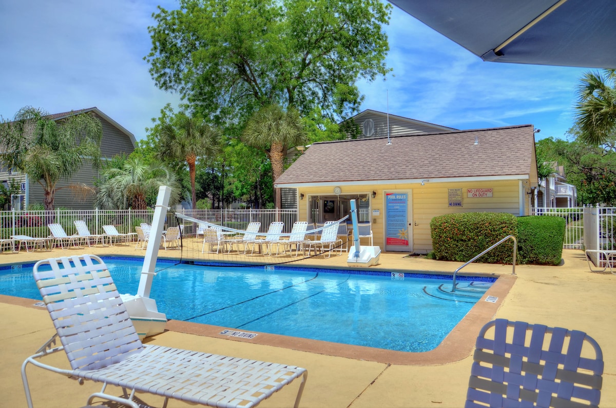 Unidad en la PLANTA BAJA ~ GRAN UBICACIÓN (Isla media/sur) ~ a poca distancia de Redfern Village (muchas tiendas y restaurantes), Southern Soul, Chickfila, Starbucks, etc ~ a poca distancia en coche de la playa y el muelle ~ RECIÉN REMODELADO ~ COMUNIDAD CERRADA ORIENTADA A LA FAMILIA ~ wifi fiable ~ TV y sofá en la sala de estar ~ cama tamaño y TV en el dormitorio principal ~ cama queen y TV en el dormitorio de invitados ~ sofá cama doble en el solárium ~ piscina y cancha de tenis ~ NO SE ADMITEN MASCOTAS NI ANIMALES, CONSULTA LAS NORMAS PARA PAGAR LA TARIFA ALTA POR MASCOTAS. **Aparcamiento: mi comunidad de propietarios no permite vehículos de trabajo/negocios**