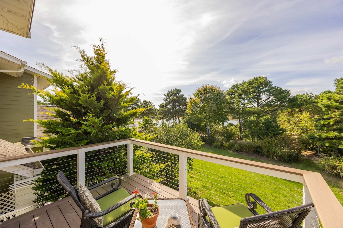 Hermoso departamento, moderno pero cómodo, recién renovado, con vistas a la playa/bahía desde el piso hasta el techo. Este departamento es una combinación armoniosa de diseño y naturaleza, ¡tanto en el interior como en el exterior! Siéntese en el porche cubierto para tomar un café o comer, mézase en la hamaca privada para disfrutar del paisaje o relájese en las tumbonas del patio después de preparar una deliciosa cena a la parrilla. En el interior, podrá disfrutar del mismo y magnífico paisaje, observando aves, cangrejos herradura e incluso algunas águilas. ¡Disfrute de un asiento en primera fila para contemplar las mejores puestas de sol del mundo!