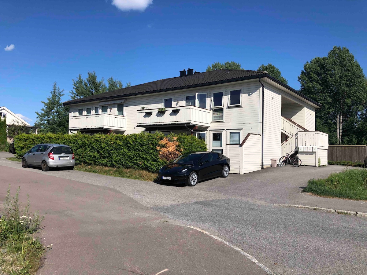 Acogedor apartamento a 12 minutos del aeropuerto de Oslo en coche. Barrio tranquilo, 15 paseo marítimo al centro de la ciudad de Jessheim. A 5 minutos de la tienda de comestibles y la pizzería. Bonito patio pequeño con parrilla de gas y muebles de exterior con sol al atardecer. 1 dormitorio con cama de 160 cm y sofá cama en la sala de estar. Si necesitas recoger / dejar en el aeropuerto, esto puede organizarse a un precio agradable. El departamento se completó la construcción de agosto -2021. Estacionamiento en el alojamiento.