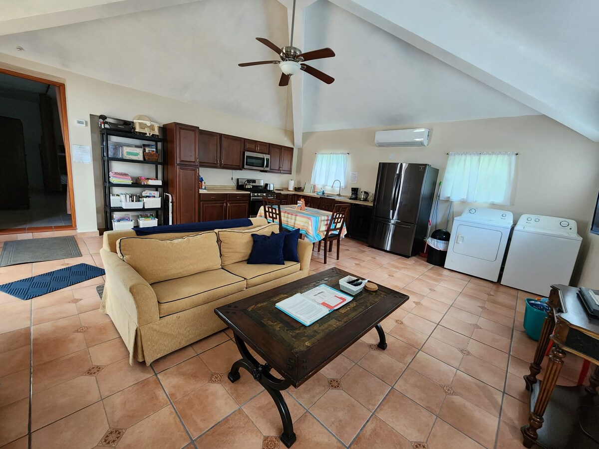 Located in Rio Grande, the city of El Yunque, the SOLAR powered Villa Apt is located in a quiet neighborhood with everything you want or need for the perfect getaway. Two large bedrooms, with their own bathroom and a large open kitchen/dining/ living room area with all the conveniences to feel at home. AC throughout the apartment and ceiling fans with a full sized kitchen, washer and dryer, Wi-Fi, two outside patios, one of which includes a hammock, and breathtaking views of El Yunque.