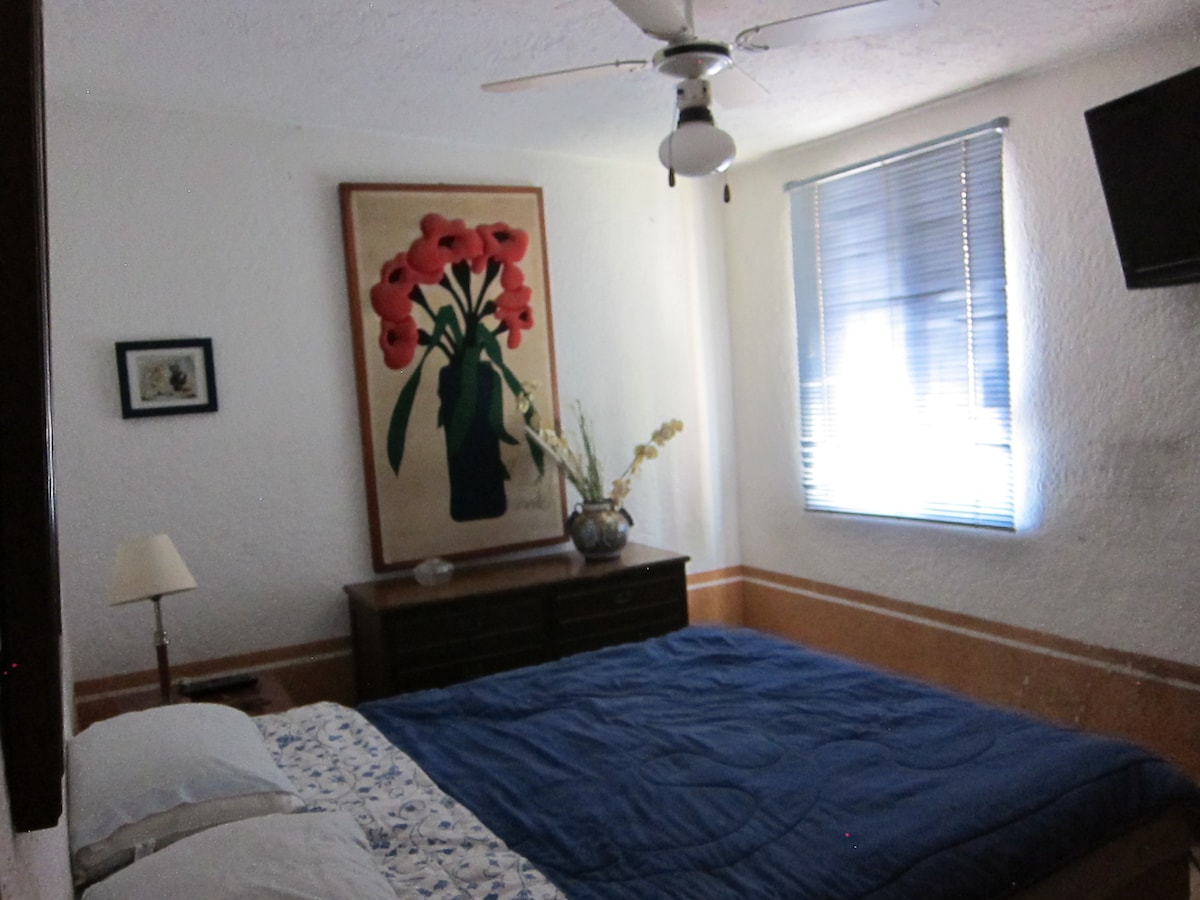 Comoda y confortable habitación ubicada en planta baja a dos cuadras del zocalo de Tepoztlán. Cuenta con servicio de WI-FI, pantalla con cable, baño privado con agua caliente las 24hr. del dia y estacionamiento dentro de la propiedad.