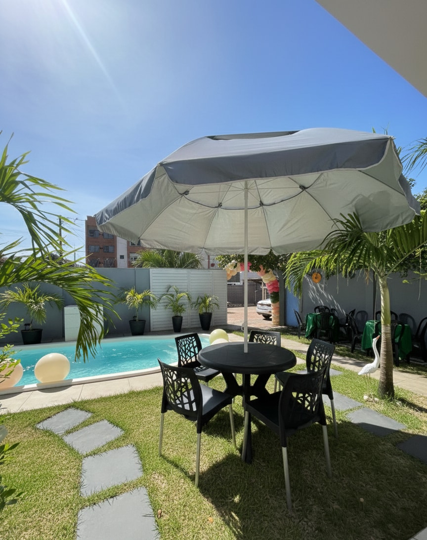 Tu familia estará cerca de todo al quedarse en este lugar bien ubicado. La casa está al lado de centros comerciales, farmacias, bares, restaurantes y a unos 30 metros del mar. Además, la casa cuenta con una gran piscina, barbacoa, terraza amplia y garaje para hasta 12 coches. Hay 4 dormitorios, uno de ellos en suite, 1 oficina, además de un baño principal, uno de servicio y otro en la zona de la piscina. Tres de las habitaciones tienen aire acondicionado y las otras tienen ventiladores. casa_manai_joaopessoa