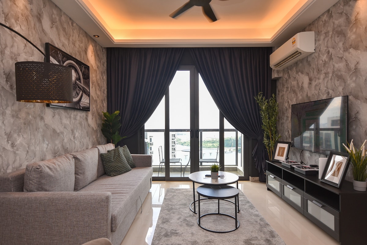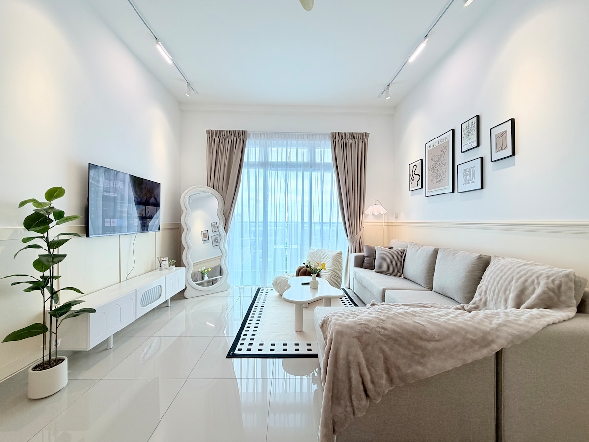 Private Luxury Suite | Walk to KSL Mall • Walking distance to KSL Mall • MUJI-inspired minimalist design • Private Jacuzzi for relaxation • Immersive cinema with surround sound • King-size bed with 12-inch premium mattress • Plush high-end sofa Designed for comfort, privacy, and quiet luxury. Ideal for couples, special occasions, or guests seeking a refined and uninterrupted stay in the heart of Johor Bahru.