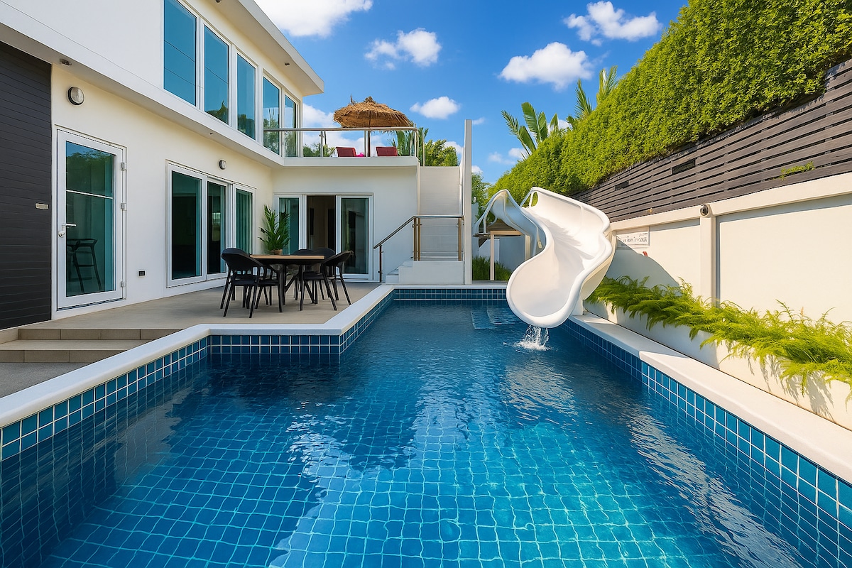 Villa de lujo con piscina en Pattaya, 3 dormitorios, barbacoa, tobogán
