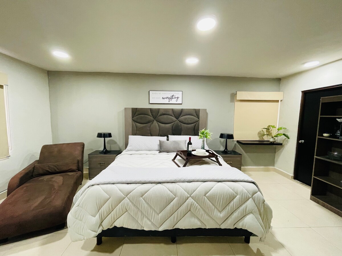Increíble y único Loft ideal para descansar. Cuenta con 1 recámara con cama king size, smart tv, espacio para trabajar, sillón para descansar, baño completo, frigobar, microondas, cafetera, aire acondicionado y wifi. Ubicado en una zona céntrica de fácil acceso a cualquier parte, está cerca de una avenida principal donde encontrarás variedad de medios de transporte. 8 min de parque fundidora 15 min de San Pedro Garza 10 min del centro de la ciudad