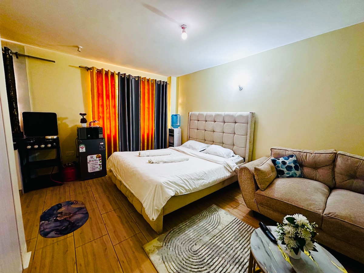 ¡Bienvenido a su hogar lejos de casa en Juja! Esta elegante casa de huéspedes de un dormitorio, totalmente amueblada, se encuentra dentro de un moderno complejo vigilado por CCTV. 1. Dormitorio: cama de 5*6 con sábanas limpias 2. Sala de estar: cómodos asientos, TV inteligente 3. Cocina pequeña: horno, hervidor y todos los utensilios de cocina básicos 4. Baño: ducha de agua caliente, artículos de tocador 5. Wifi y aparcamiento gratuito en las instalaciones 6. Ideal para: parejas, viajeros solitarios.