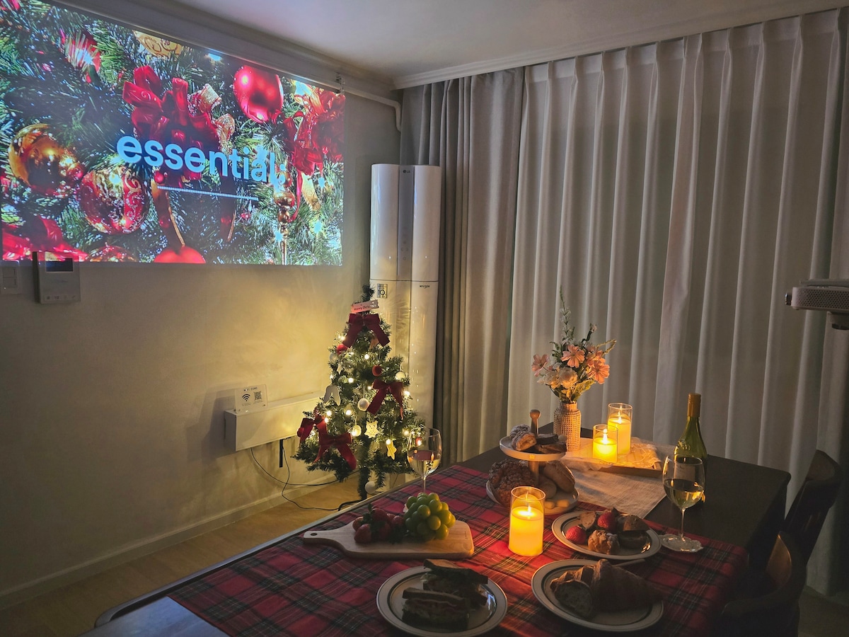 Disfruta de un descanso relajante en un espacio acogedor con vegetación. ^^ Puedes alojarte cómoda y agradablemente, como una familia o un grupo de amigos. El recientemente renovado Green in the House en mayo de 2025 ofrece un espacio sensual con limpieza y comodidad como el mejor valor ^ ^ 4 aires acondicionados (instalados en el salón y en todas las habitaciones), TV grande de 75 pulgadas, proyector de haz para toda la pared, ropa de cama de hotel 100 % algodón y toallas de hotel mullidas, lavadora y secadora de gran capacidad, 3 secadores de pelo y 2 planchas mágicas, etc. También hay todos los servicios básicos disponibles.(champú, acondicionador, gel de baño, aceite limpiador, cepillo de dientes, pasta de dientes, jabón, jabón de manos, detergente para la ropa, suavizante para la ropa, detergente para la cocina) Una plaza de aparcamiento designada está disponible en la primera planta del edificio ^^ (Por favor, aparque en el lugar con el letrero del lago al que entrará ^^)