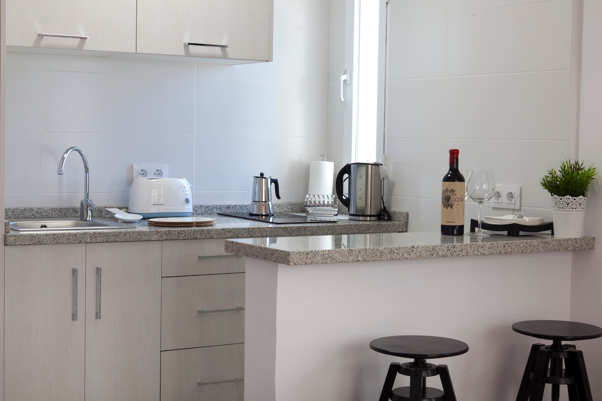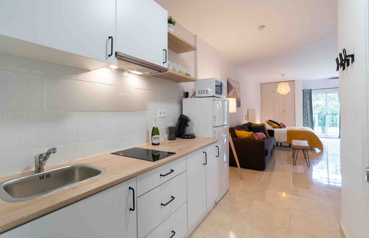 Encantador y moderno Estudio recien reformado, en el centro de Arroyo de la Miel, Benalmadena, cerca de bares, restaurantes, cafeterias, supermercados y todo tipo de comercios. Totalmente equipado con lo necesario para pasar unas agradables vacaciones. Preciosa vista al mar desde el balcon. La playa se encuentra a unos 10 minutos a pie. Hay estacionamiento privado gratuito para el edificio (sujeto a disponibilidad). Por mantenimiento no podemos asegurar la utilización de piscinas este año.