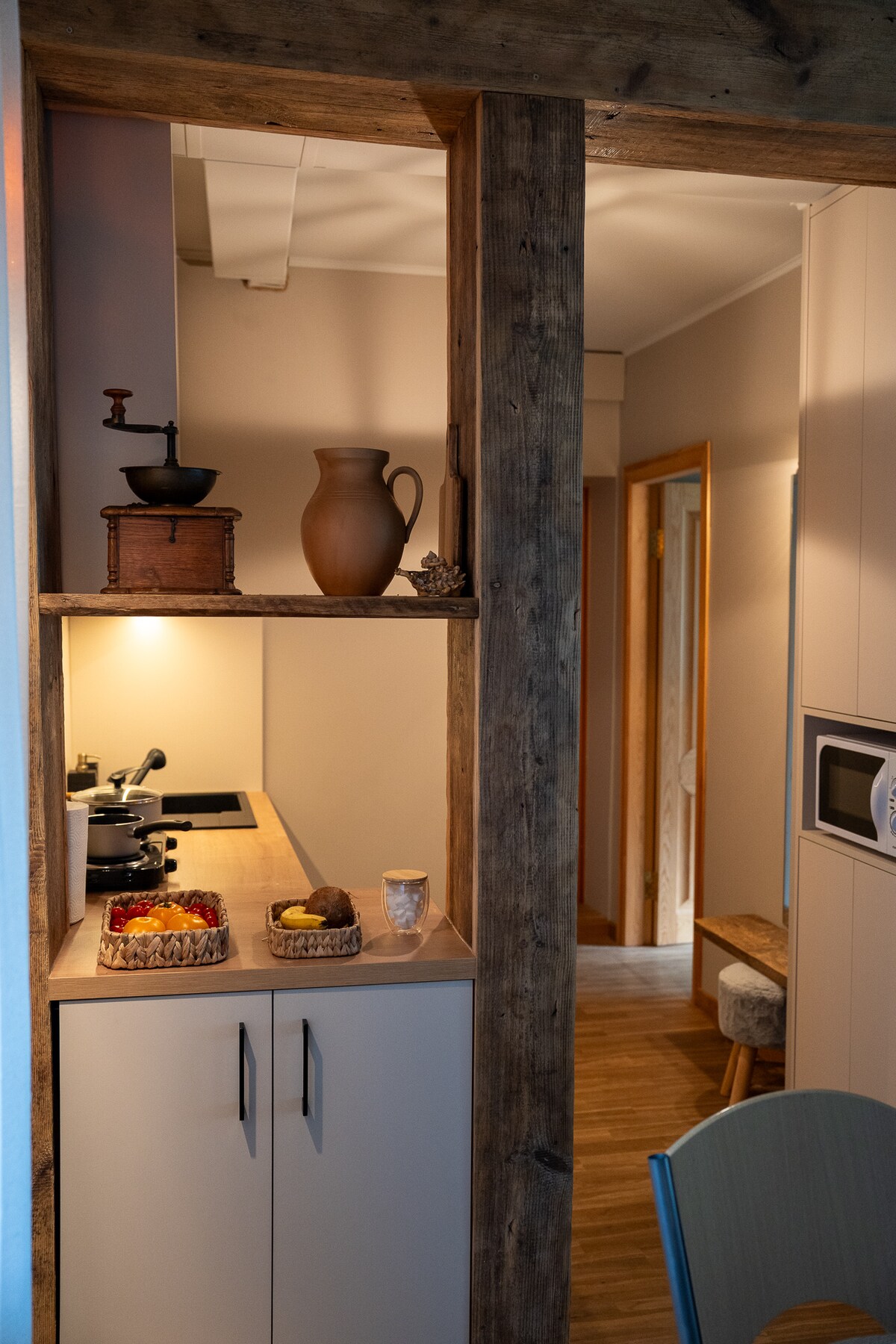 Rudenī šeit ir patīkami silti, un telpu temperatūra tiek uzturēta stabila. Te mājo laika pieskāriens ar koka durvīm, grīdām un logiem. Tieši tas piešķir vietai siltumu un stāstu. Ja jums patīk īstums un dzīva vide, jūs šeit jutīsieties labi. Šī ir vieta, kur jūties gaidīts un pieņemts. Dzīvoklis ar balkonu, dārzu un draudzīgiem sunīšiem pagalmā — piemērots mierīgai atpūtai pāriem, draugiem vai ģimenēm ar bērniem no 7 gadu vecuma. Ir iespēja iznomāt divriteņus 4gab.