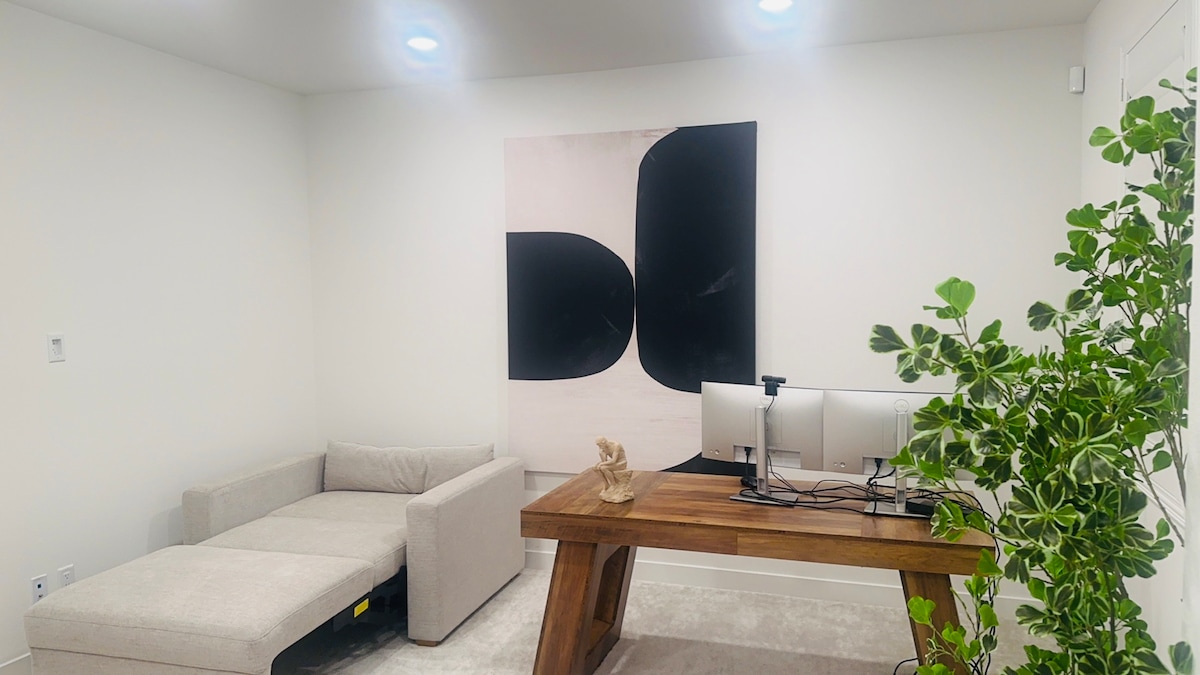 City lights views in this fully stocked, all new light bright studio guest home. Spectacular evening sunsets! Quiet upscale neighborhood with hiking/biking trails, beautiful park, golf, ecclectic shopping and restaurants all nearby. Our consistent “Super Host” status is in the top 1% of guest favorites! Disneyland, Knotts, Convention Center, Angels, trains, beaches, mountains! OC Central yet peaceful location feels exclusive on top of the world! Adjacent parking/ Easy entry
