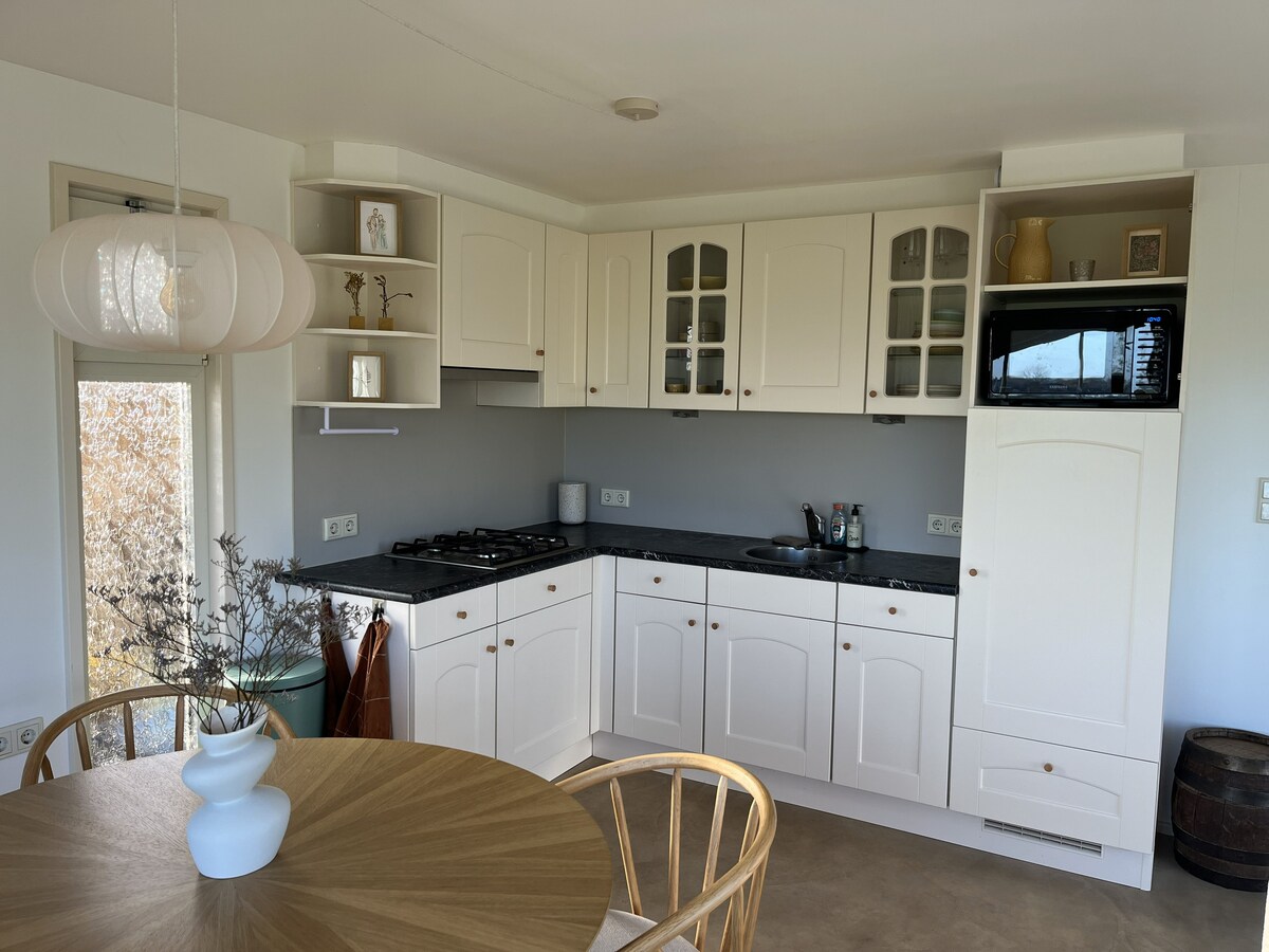 Casa de campo totalmente renovada de 1830 con elementos auténticos y decoración de buen gusto. En la planta baja hay 4 espacios; una acogedora sala de estar, un acogedor comedor con estufa de leña, una sala de libros/juegos y una gran cocina con segundo comedor. Inodoro separado en el pasillo. Arriba, un amplio baño con bañera y ducha independiente y 4 dormitorios con camas para 5 adultos, una cama para niños pequeños y una cuna. Amplio jardín delantero en el sendero del agua y para bicicletas. ¡3 baches laterales que comen fuera de las manos y proporcionan huevos frescos diarios!