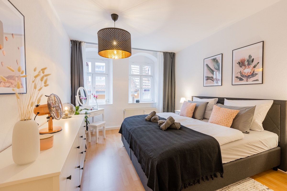 Palais Orange – Stunning Vineyard View Apartment in Old Town Meissen Welcome to Palais Orange in Meissen! This stylish 67 m² apartment is located right next to the vineyards in the heart of the Old Town. Enjoy the balcony with breathtaking views, relax in the bathtub or shower, and benefit from Smart TV with free Netflix, Nespresso, underfloor heating, fully equipped kitchen, washing machine and high-speed fiber Wi-Fi. Parking spots in front of the house!