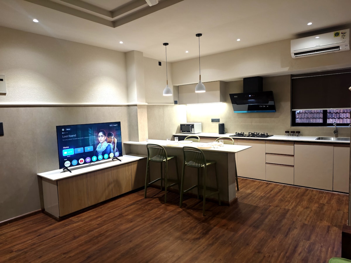 ¡Quédate con estilo y comodidad en este apartamento de 1BHK totalmente climatizado en el centro de Kannur! Ubicado cerca del centro comercial Secura, Thazhechovva, este moderno departamento es perfecto para familias, parejas o viajeros de negocios. Disfruta de una espaciosa configuración con un dormitorio acogedor, un lujoso baño, una cómoda sala de estar, una cocina totalmente equipada y wifi gratuito. Con todas las principales atracciones turísticas y playas a pocos kilómetros en coche.