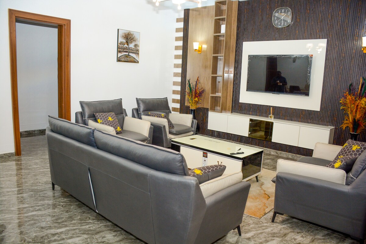 AY Crib is a modern short-let apartment designed for comfort, privacy, and relaxation. — it’s a stylish service apartment where guests enjoy both luxury and home-like freedom.,24/7 Power supply, Unlimited internet for work, streaming & fun, The entire premises are yours alone, cozy living room, equipped kitchen, comfy bedroom(s),Privacy Guaranteed – You get the whole building/premises to yourself, Convenient Location – Situated in a calm neighborhood that blends comfort with accessibility.