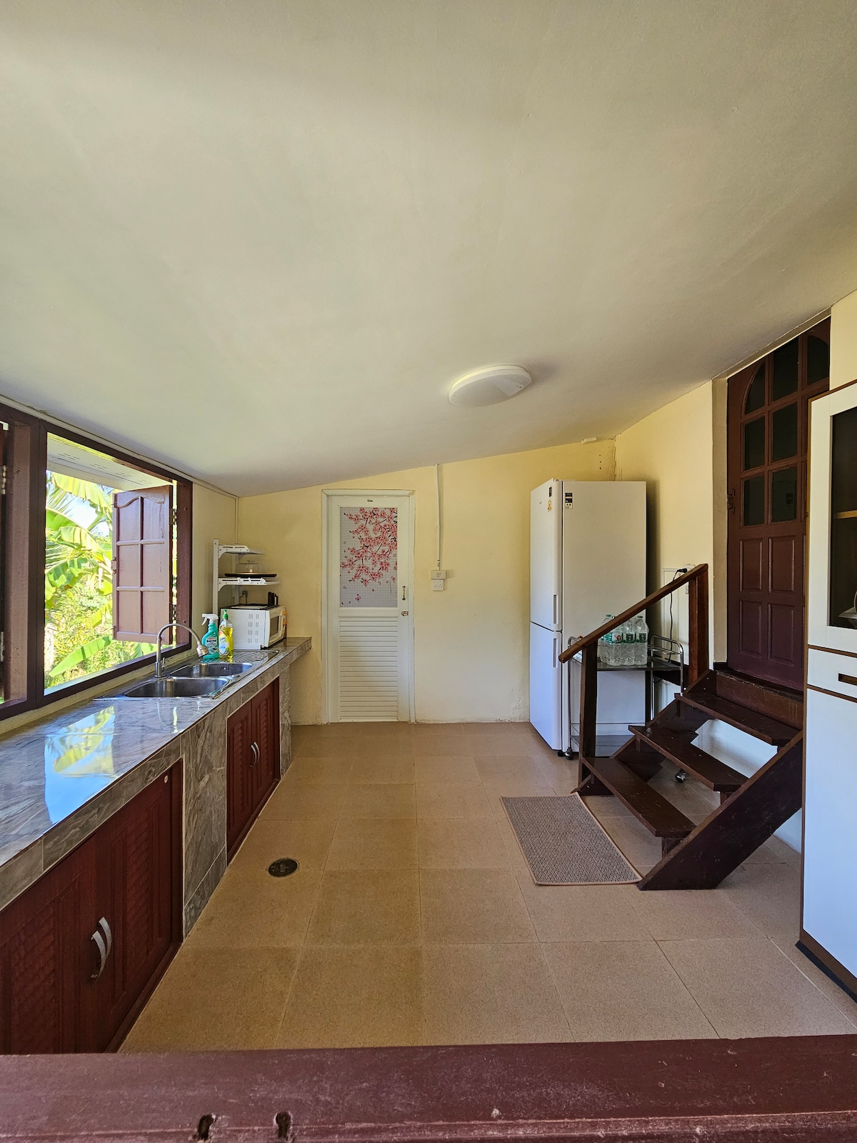 Ubicada a lo largo de la autopista #3432, mi casa está rodeada de montañas en todas direcciones y se encuentra junto a un tranquilo estanque en 2,7 acres (7 rai) de tierra boscosa, casi todos los árboles plantados con amor en los últimos 16 años. Utilizamos agua fresca de estanque filtrada a través de resina y carbón para el uso diario. Compartirás el espacio con la naturaleza, los cálaos anidan aquí durante la temporada de cría (¡han criado un polluelo este año!), junto con brillantes luciérnagas y mariposas revoloteando que añaden magia a las noches.